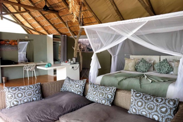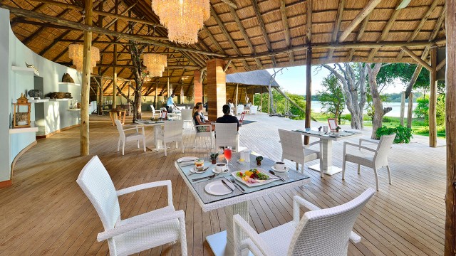 火車於上午10:00抵達維多利亞鎮,整理行囊結束難忘的豪華火車之旅。專車前往今日下榻的旅館 『Victoria Falls River Lodge』,位於國家公園內,水源豐沛,是各種動物的棲息地。