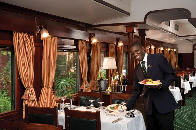 今早09:30辦理check-in準備搭上非洲之傲(The Pride of Africa)-ROVOS RAIL 展開4天3夜火車之旅。奔馳向北於南非境內跨越南回歸線(23°26′S),穿越非洲大陸遊覽特殊景致,一路抵達享有全世界三大瀑布之一『維多利亞瀑布』所在地維多利亞鎮。