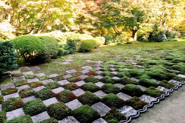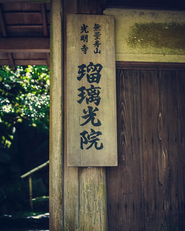 可將手機或相機擺放在寫經桌上拍攝還有瑠璃之庭及臥龍之庭。瑠璃之庭的設計是要重現淨土的世界,青苔經細心保養,天晴時在光線照射下,輝映出瑠璃色,因此這座寺院取名為瑠璃光院。