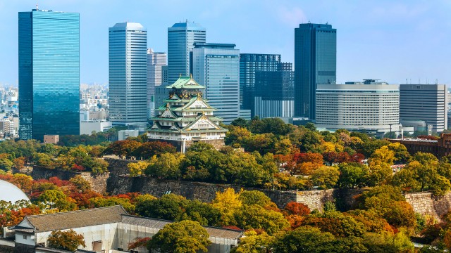 新梅田城位於引領流行的時髦商城—梅田,由梅田藍天大廈與Westin飯店構成,在梅田藍天大廈40層樓高的大廈裡有位於最頂層、全日本唯一的開放型屋上瞭望台—空中庭園展望台,電影院,重現日本昭和初期城市風景的美食街,精品名店,陳列許多最新潮產品的展覽廳,診所,自然森林及辦公室。梅田藍天大廈是世界上罕見的「連接式超級高層大廈」。