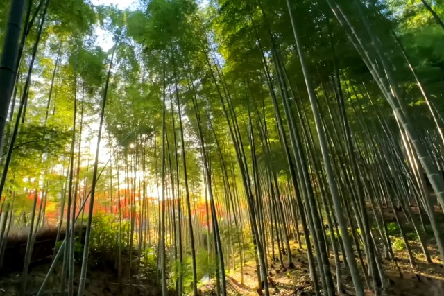 野宮神社的週邊竹林,是嵯峨野地區的代表性風景,自古即以「野宮竹」的名稱聞名,漫步其間,寺廟裏美麗的青苔及週邊的竹林,讓野宮神社的美成為日本文人芭蕉及蕪村的俳句題材,在日本文學作品《源氏物語》的《賢木之巻》也有描述。各位貴賓可以藉由人力車漫遊於★竹林小徑之中。