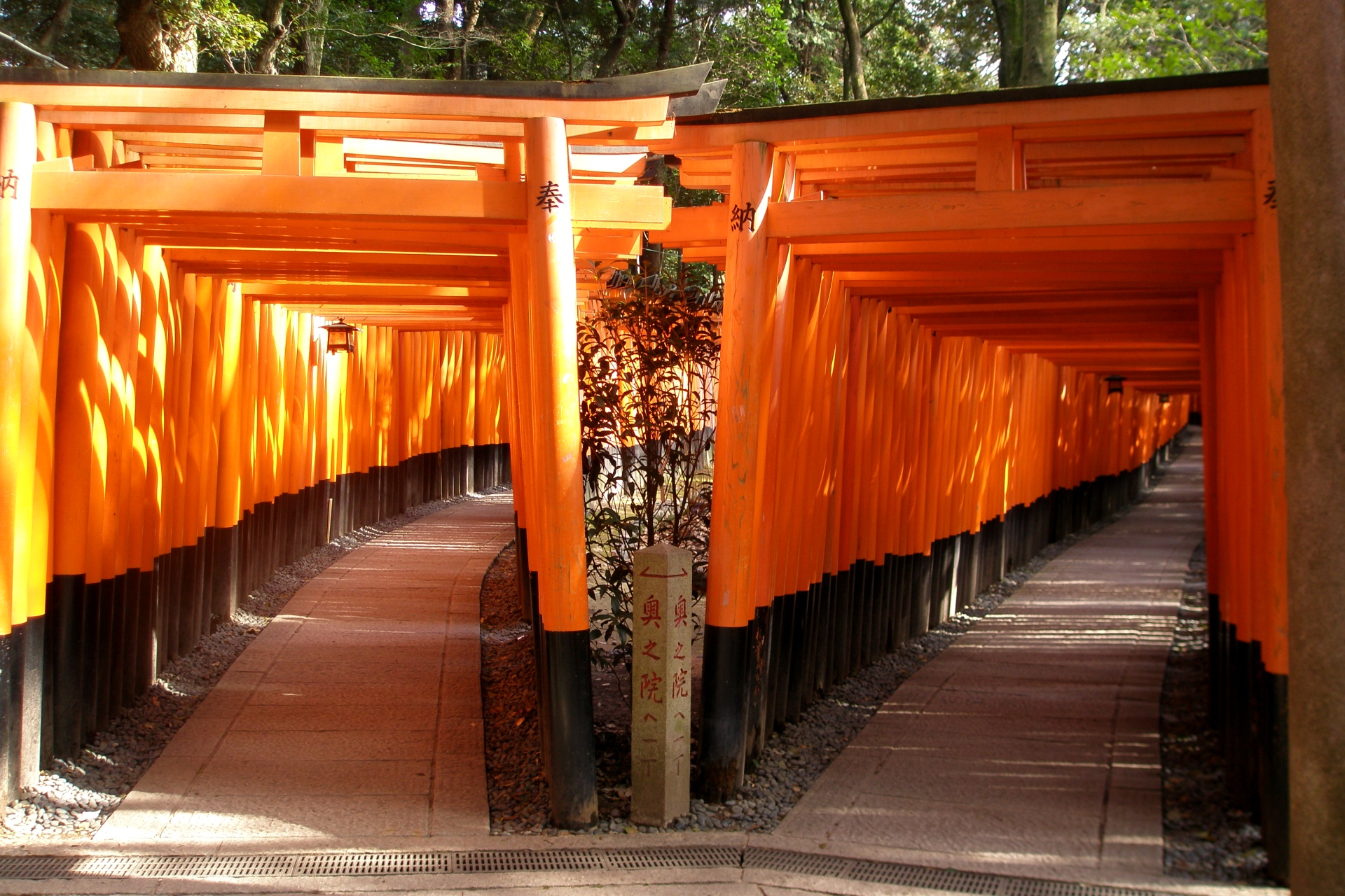 伏見稻荷大社最讓人印象深刻的就是那綿延山頭達數公里的千本鳥居,這群數量驚人的鳥居據說高達萬座以上一直延伸到稻荷山頂,這些鳥居都是由各地信徒捐建而成。想要走完鳥居所綿延的隧道約需2小時左右的時間,