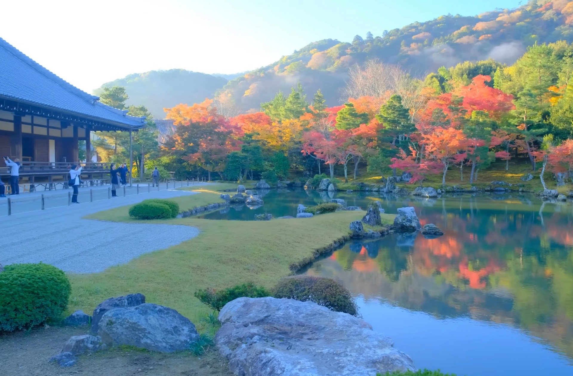天龍寺建於公元 1339 年,被喻為「京都五大禪寺」之首,所屬的曹源池庭園仍然保持創立初期的原貌。天龍寺在1995年被指定為聯合國世界文化遺產。也是京都著名櫻花和紅葉的觀賞景點之一。