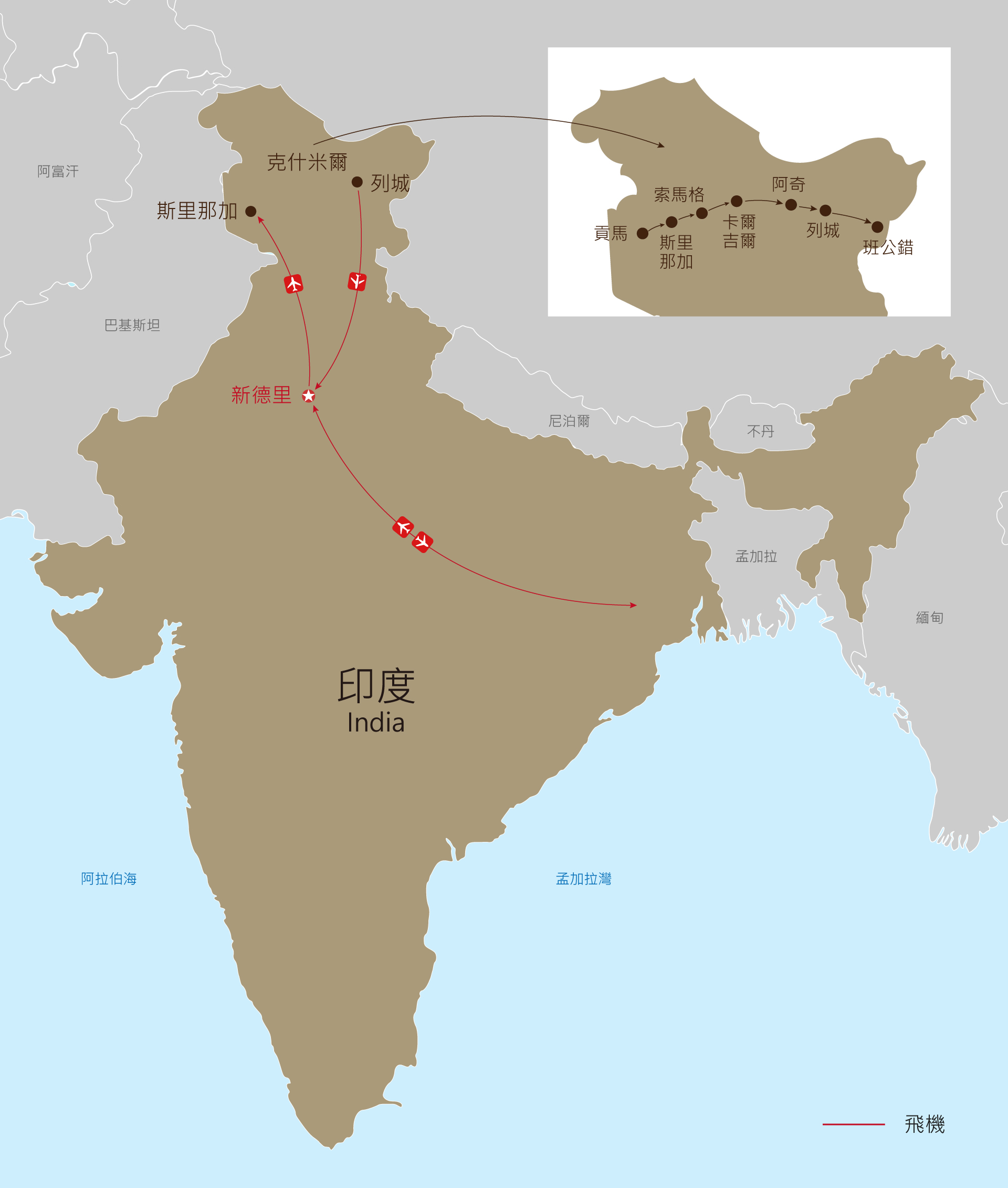 今日【阿奇寺廟群】(Alchi Monastary),建於11世紀,為拉達克最古老的寺院之一。保存完整的國寶壁畫:千佛壁畫、度母圖、五方佛壇城,以及早期風格的佛像。隨後繼續驅車往列城方向。 途中參觀【力奇寺】(Likir Monastary),建於西元1065年,拉達克五世國王時期,距今已有千年之久。抵達列城用午餐後,前往擁有"小西藏"之稱的拉達克首府-列城,此地為七世紀時玄奘大師至天竺取經時進入印度的門戶。參觀『黑美寺Hemis Monastery』,有一尊金碧輝煌的坐佛,將近三層樓高,是拉達克境內最大的佛像。