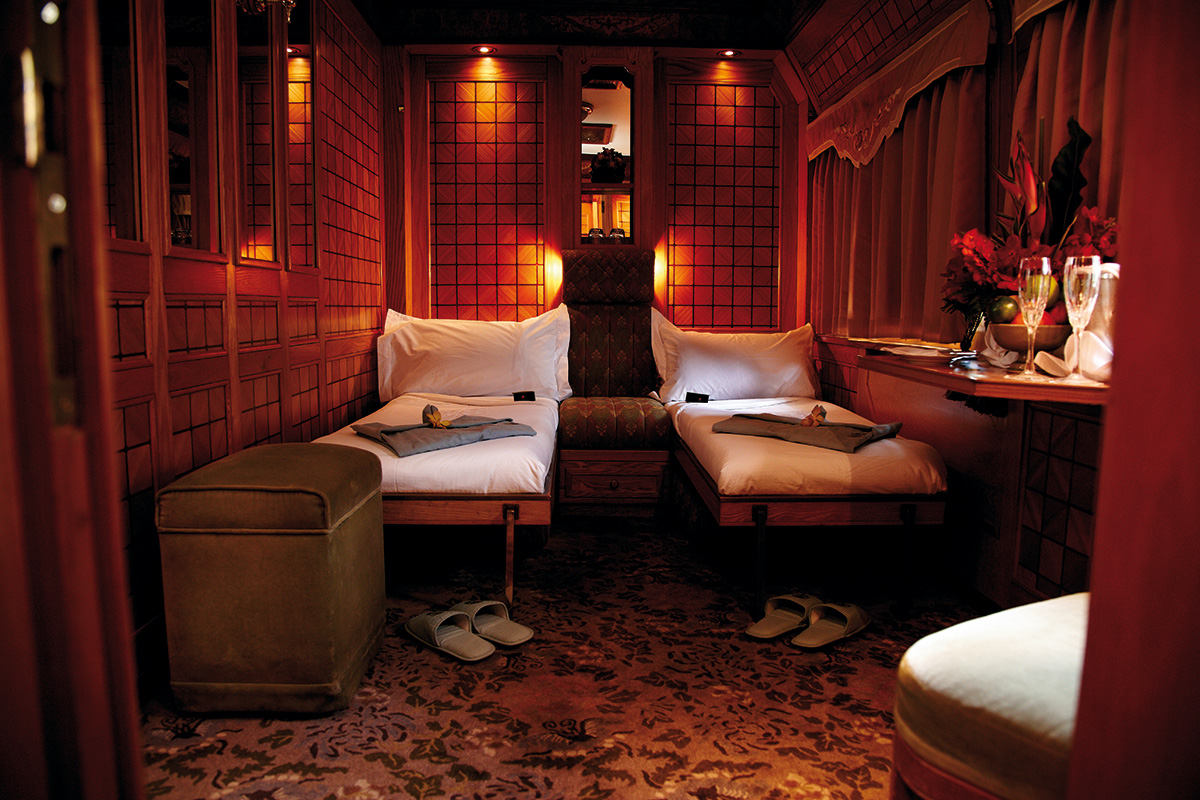 火車上除客房車廂外與餐車車廂之外,還配有一節鋼琴師駐唱的酒吧車廂、一節Lounge吧沙龍車廂(設有小型圖書館與免稅品牌精品店,並且融合東方色彩提供算命服務,堪稱其特色),以及一節沒有玻璃阻隔的開放式全覽觀景車廂。