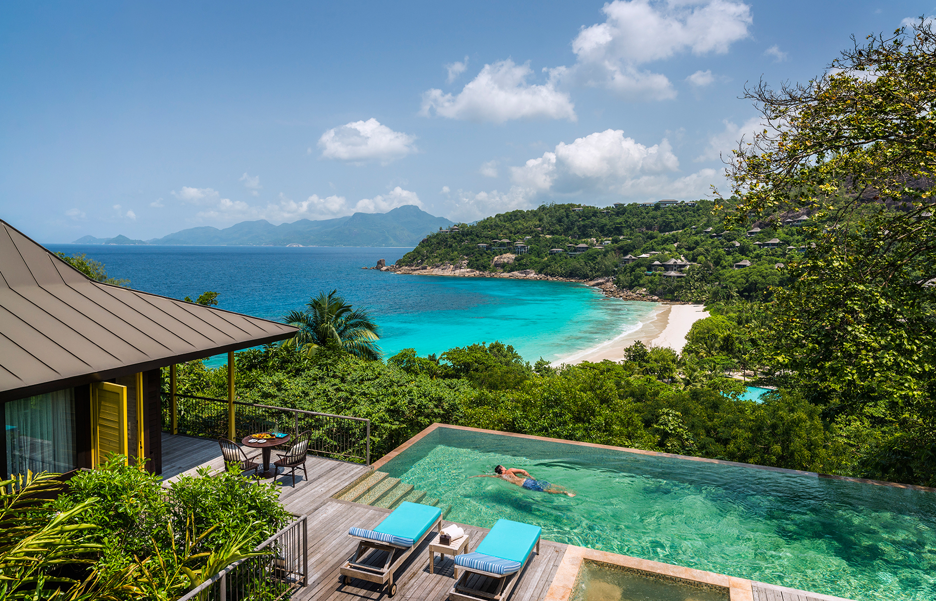 一陣柔和的海風,從花崗岩的山坡上吹拂而來,進入您的樹屋別墅,邀您緩緩甦醒~無論您是甜蜜兩人還是溫馨的家庭旅遊,四季都希望您在這裡,以自己的節奏,體驗幽靜如伊甸園般的塞席爾島。您可以在私人游泳池旁放空,或者在海灣碧綠的海水中嬉戲,或者預約我們空曠的山頂水療中心尋找身心靈的舒適幸福,或者在寂靜的海灘上坐下來,享用浪漫的日落晚餐。無論如何,您會在這,尋找到屬於自己的天堂。