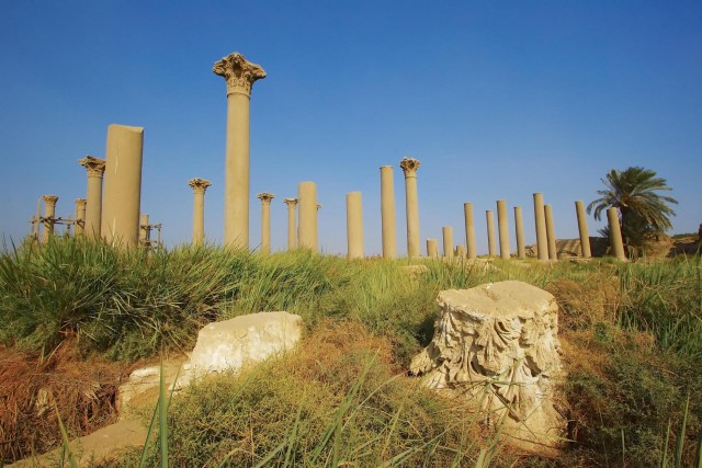 希臘羅馬時代建造的涼亭遺跡,仍餘留4根紙莎草石柱,2根哈托爾女神石柱
