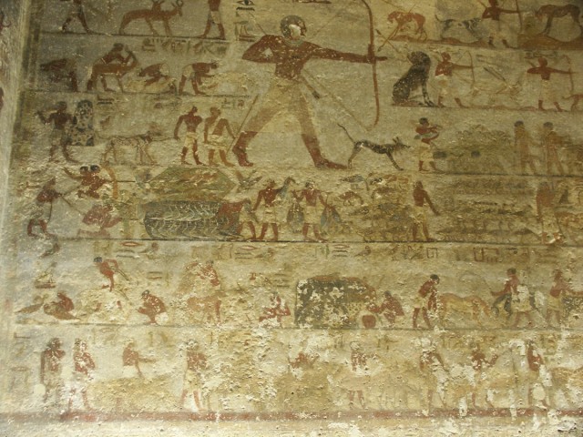 今日參觀:★貝尼。哈森陵墓,中王國時期當地長官或省長的墓地群,觀賞仍保有色彩的壁畫,感受當時的農村生活、狩獵、或獻祭等等。