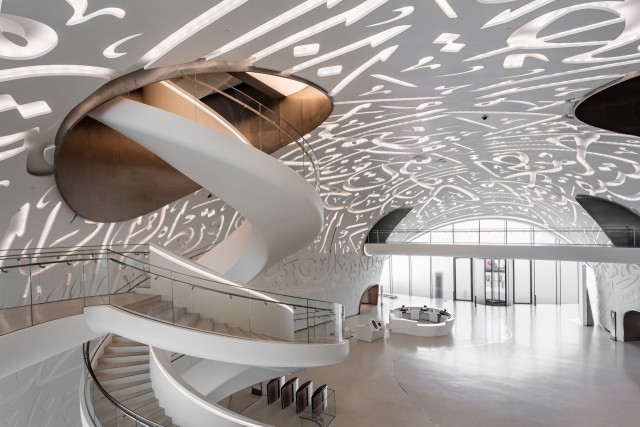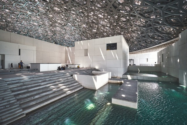 午餐後前往Saadiyat Island (快樂島Island of Happiness)薩迪亞特文化區Saadiyat Cultural District Abu Dhabi參觀2017/11/11開幕的★羅浮宮Louvre Abu Dhabi阿布達比分館參觀,此棟博物館設計師Jean Nouvel在沙漠國家中建造出的唯美建築,閃耀文化之美。除了豐富的展覽作品外,另可欣賞其建築美學。