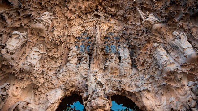 東部的誕生立面和4座鐘樓是由高第完成的,以基督的誕生為主題,牆上的雕塑展現了由童貞瑪利亞懷胎到基督成長的故事,因是歡迎慶祝基督誕生,以歡喜愉悅的雕塑為主。