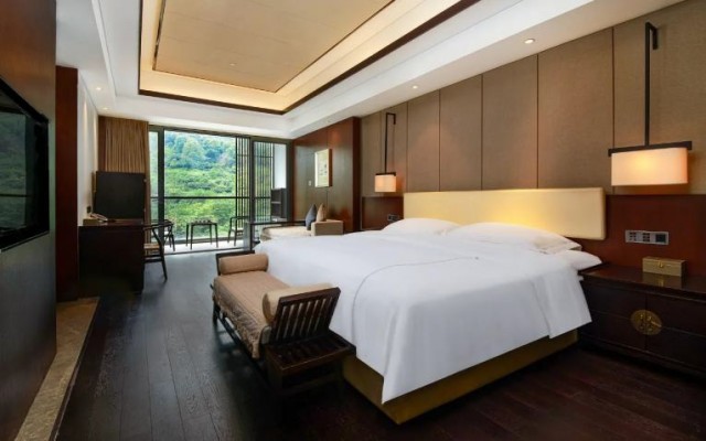 隱匿於青城山的青山綠水間,禪意十足,環境靜謐,溫泉、SPA等設施齊全,是放鬆身心的絕佳之選。中國首家且唯一的六善品牌度假酒店,坐落于世界文化遺產青城山前山腳下,與都江堰景區咫尺相鄰,將道教文化與川西民居風格完美融合。