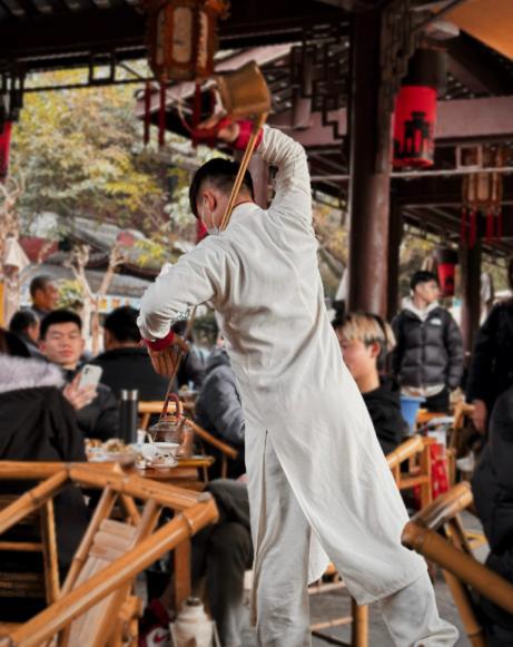 走進茶社,青瓦木梁、竹椅方桌,古樸的陳設瞬間帶你穿越回舊時光。點一杯蓋碗茶,茶葉在沸水沖泡下舒展,茶香四溢,配上一碟瓜子、花生,聽著鄰桌的龍門陣,看師傅嫺熟地表演采耳技藝,感受成都人“巴適”的生活節奏,沉浸式體驗老成都的市井煙火與悠閒愜意。