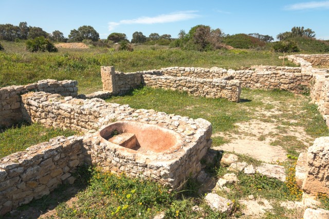 在羅馬征服迦太基後,此區大量種植葡萄、橄欖等,是重要穀倉,並反銷羅馬而致富,其中豪宅值得探訪,也參觀其他古跡、如羅馬神殿群、房舍、劇場、浴場、集會堂等。
