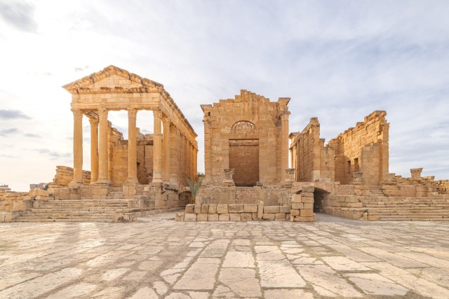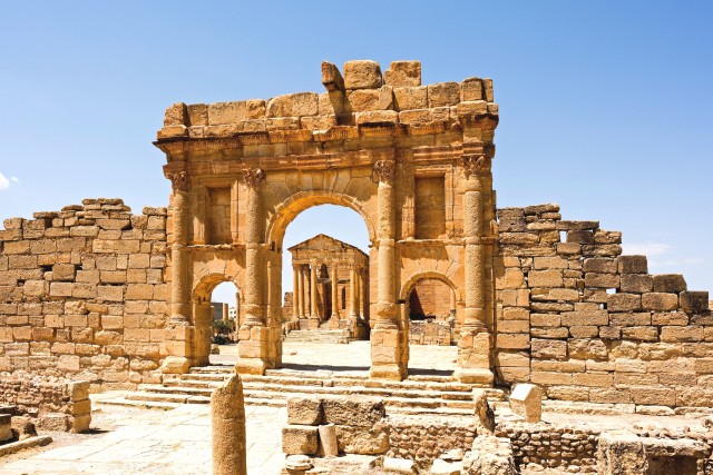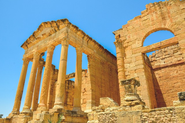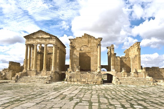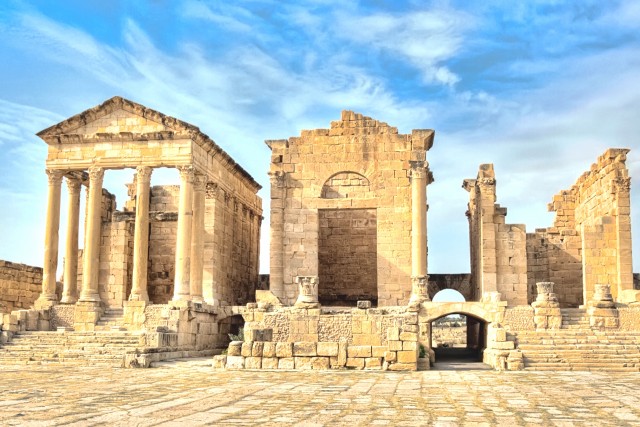 早上專車前往斯培特拉Sbeitla。抵達後先用午餐,之後參訪規模宏偉的★古羅馬大城遺跡區Acheological Ruins of Sbeitla。