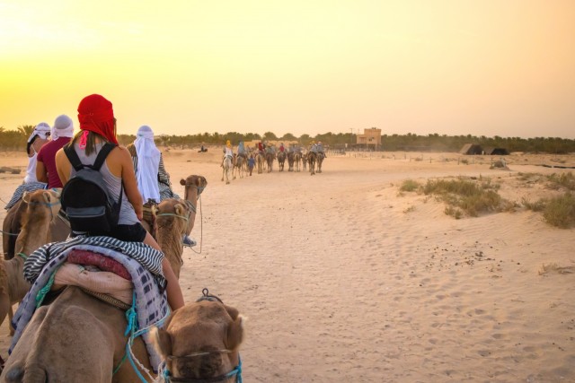 進入沙漠區後,安排大家★騎乘駱駝,悠閒漫步於沙漠中,並前往沙丘區、登上丘頂、靜候並欣賞沙漠落日的美景。