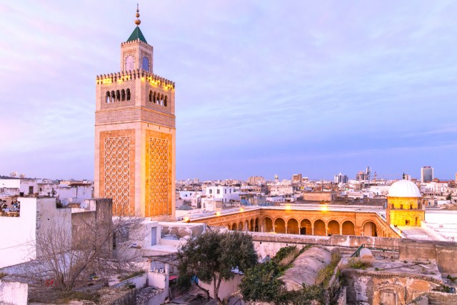 將遊覽突尼斯的◇老城區Tunis Medina、◇聖文森大教堂St. Vincent Cathedral、人氣打卡頂樓陽台的★觀景咖啡廳 Café Panorama等。晚餐後專車返回旅館休息。