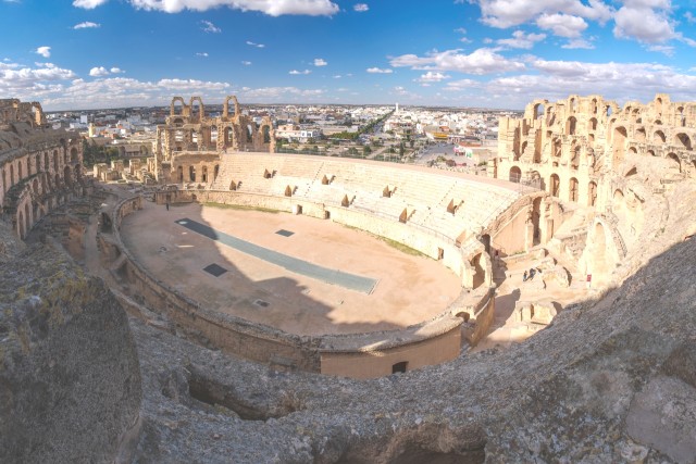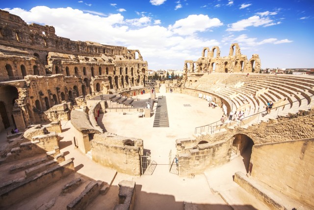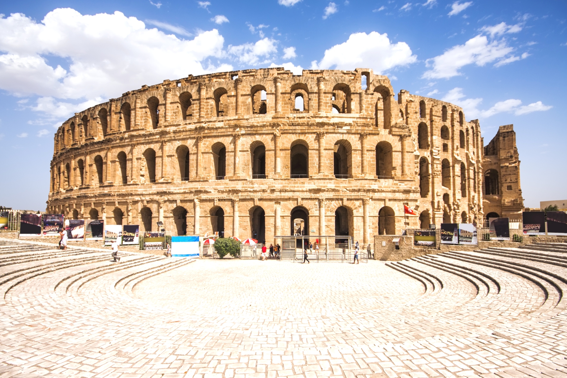 這座建於西元三世紀的競技場,可容納35,000名觀眾,三層拱門與龐大規模,讓人見識到羅馬帝國的建築奇蹟和國力,現在是非洲保存最完善及最壯觀漂亮的競技場。