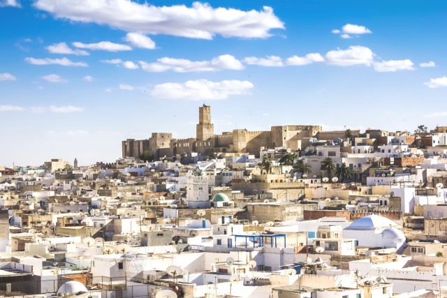 今早蘇斯Sousse古城觀光:參觀阿拉伯人建於八世紀末且仍固若金湯的★大城堡 Ribat,鳥瞰蘇斯市容,及◇大清真寺the Grand Mosque外圍。