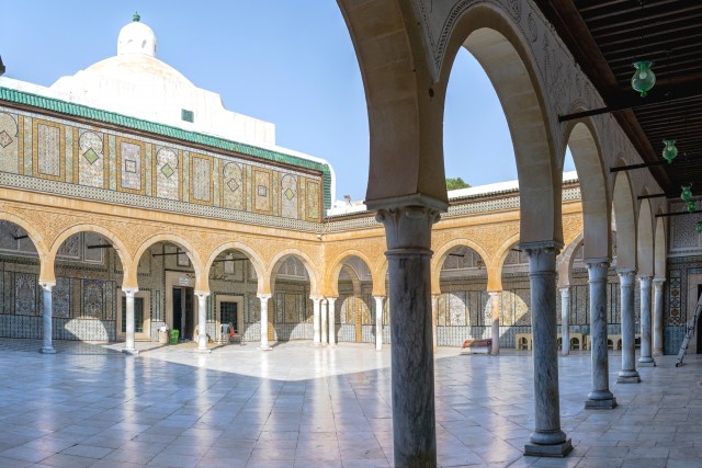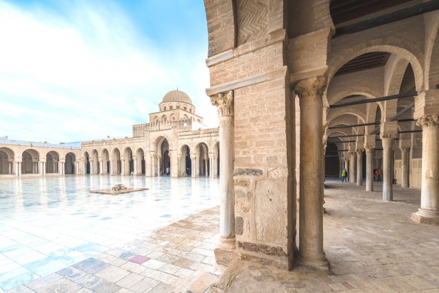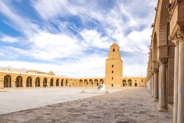 上午開路安市區觀光:★理髮師清真寺/經書學院Zaouia of Sidi Sahabi、★大清真寺the Great Mosque of Kairouan、◇古城區巿集Medina、 ☆總督府Governor’s House。