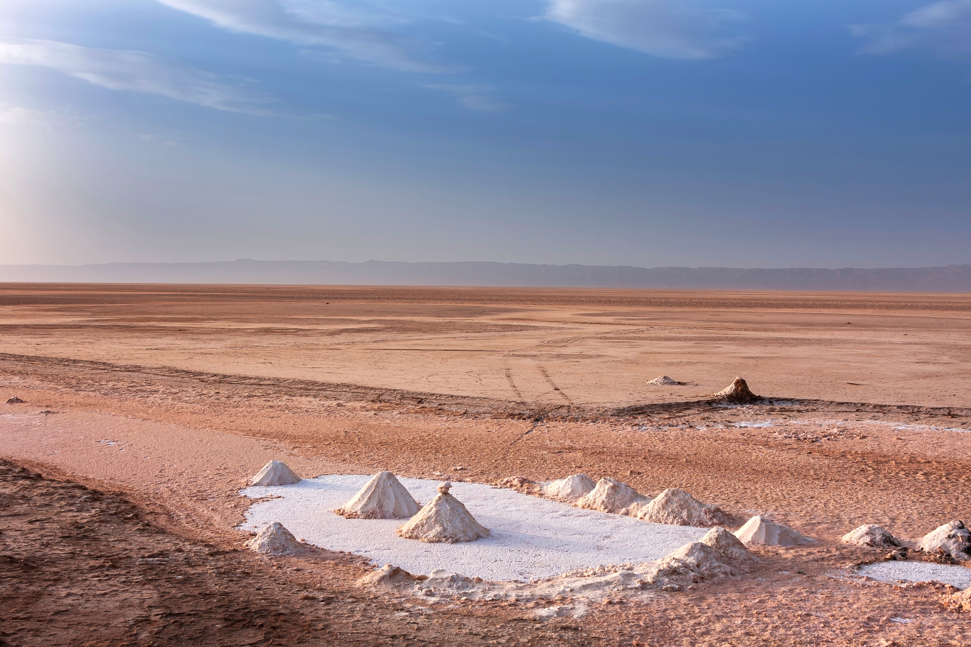 中午專車進杜茲市區享用午餐,之後取道經全球知名,遼闊的◇捷利特鹽湖區Chott Jerid Salt Lake,窺探撒哈拉沙漠的特產—「沙漠玫瑰」的風采。
