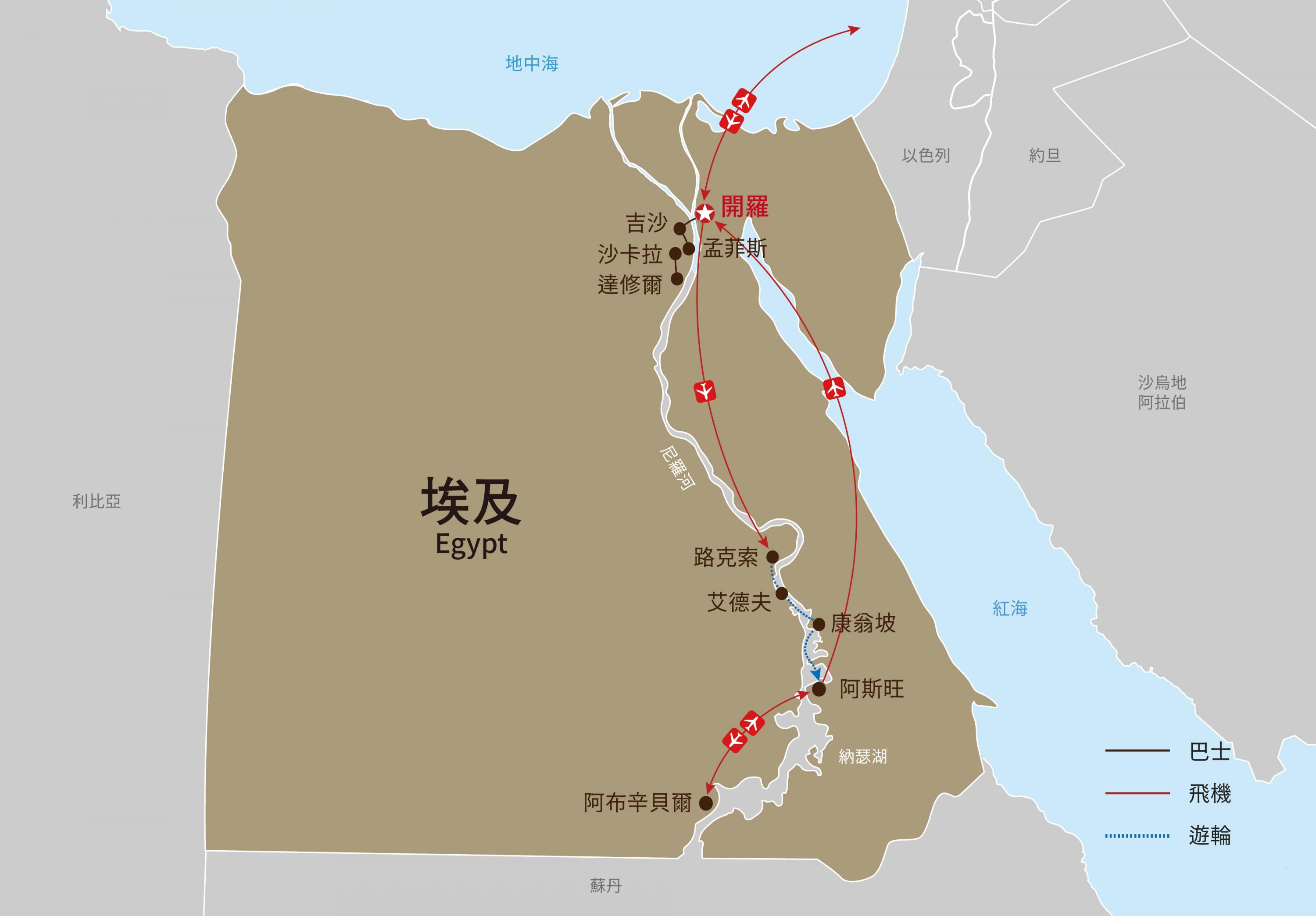 尼羅河沿岸匯集埃及古文明精華,總讓旅人感嘆時間不夠,交通省時成為頂級旅遊關鍵,坊間多安排乘車或火車,舟車勞頓且耗時,皇家特地規劃四段國內線,大幅減少拉車,帶您優雅漫遊完整的埃及史。