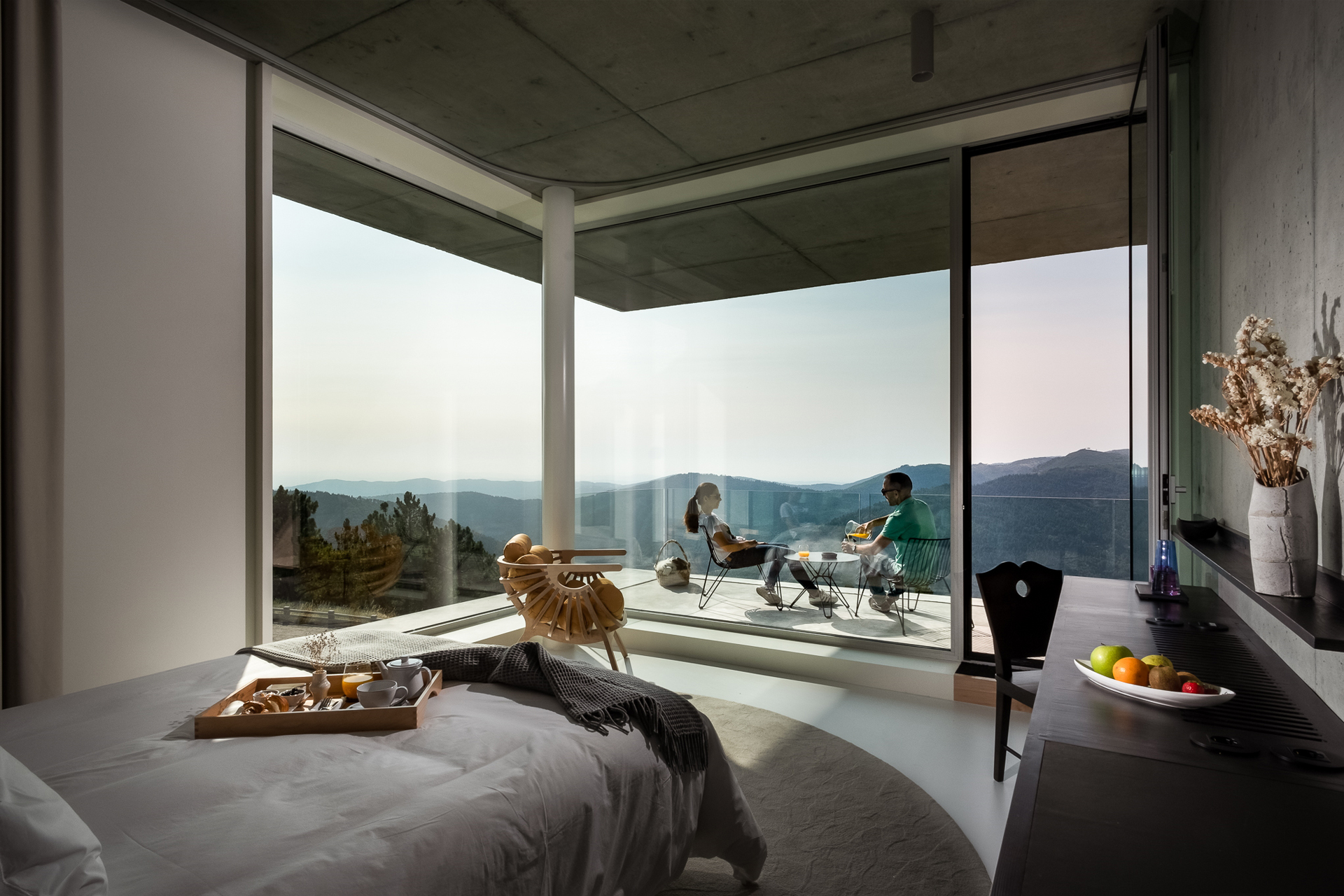 位於葡萄牙第一高山,海拔約1250公尺的五星級精品渡假旅館,設計師設巧融合混凝土、木材、羊毛與當地織品,每間客房都獨具風格,並設有大片落地窗與陽台,遺世絕美的山谷風光一覽無疑,另有豐富設施如泳池與水療SPA。